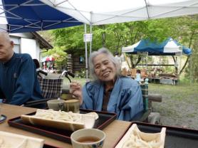 普段は無口で寡黙な方もおやきやうどんを皆で食べながら笑顔で会話され