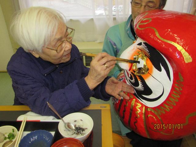 ら、最高齢の男性と女性ご利用者の方にダルマ開眼筆入れをお願い致しました。また、入苑10