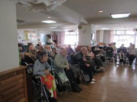 ました。またご利用者の間に入られ、腹話術を間近で見せていただいたりと少々時間も延長しま