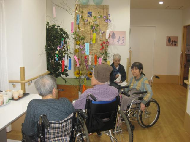 杉ユニット、檜ユニット合同で竹に短冊を飾り、お茶の時間を過ごして頂きました。