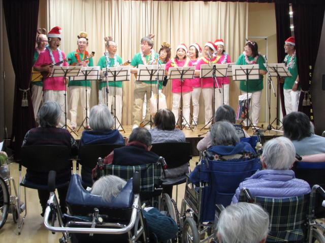 移転後初めてとなるフラダンスとウクレレの演奏会が11月26日(日)ボランティアのフラダンス「ロケラニ」、ウクレレ演奏「プアマナ」の皆様により、施設内1階地域交流スペースにて行われました。