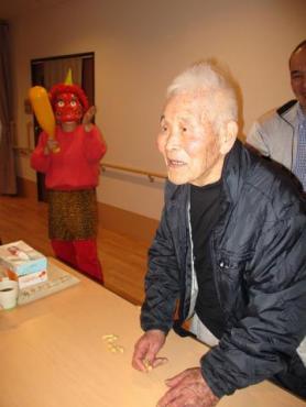2月3日が節分の日なので苑内で豆まきを行いました。職員が扮する年男役1名、鬼役3名で各ユニットを回りました。ユニットでは鬼に対し豆を力強くなげるご入居者様方や、鬼のお面を見て逃げ出そうとされる方もいらっしゃいました。中には鬼にそっと豆を下さる方もいらしてとてもほのぼのした空気の中で豆まきを行いご入居者さまと今年の福をお祈りしました。