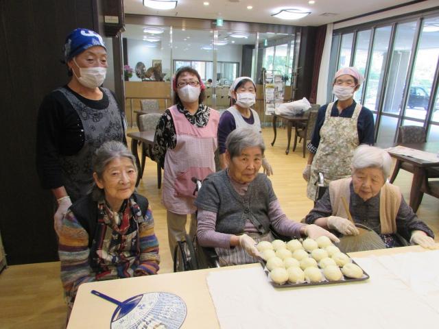 懐かしい思い出を語り合いながら蒸かしたてのまんじゅうを頬張り、良い笑顔が見られたひとときでした。