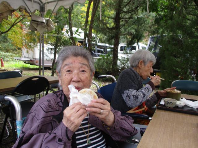 会場に着き地元の方々に作って頂いた、うどん、お焼きを注文し、食べて季節感を楽しんで頂きました。その後しばらく地元の方やご入居者様同士で談笑頂き散策をして帰苑しました。皆さん笑顔で一時を過ごされ和まれておりました。