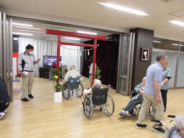 1月9日に1階交流スペースにて苑内初詣を行いました。鳥居をくぐるとその先に笹野の