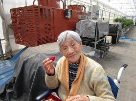 「いちご狩りに行きたい、果物が好き」とご要望のあった入居者様4名をお連れしました。 天気も良く温かい日差しがあり、日頃から寒がりな入居者様たちからも「寒い」とは言われず、楽しまれていたご様子。 昼食は和食レストランに立ち寄り、各自食べたい物を選んでいただき、終始笑顔で召し上がっておりました。いちご狩り園に到着し、ビニールハウスの中へお連れすると、目の前に広がるいちごをご覧になり、「わ〜、すごい。これ全部いちごなの。」と話されていました。昼食のあとですが皆さん別腹のようでたくさん召し上がっておりました。帰り道には、「また是非来たいです。あんなにいちごを食べたのは初めて。」などと話され、みなさん大変喜ばれたご様子でした。