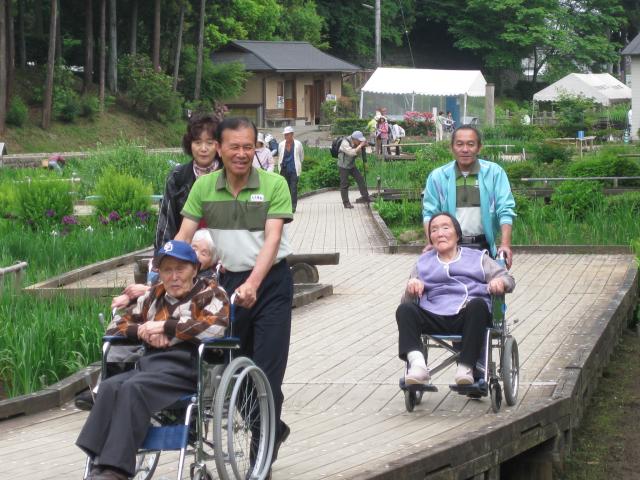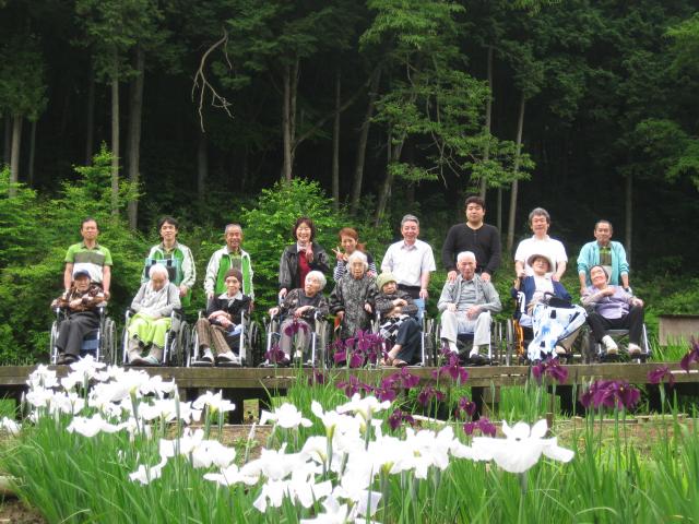 | 6月8日 青梅吹上菖蒲公園へ出掛けました。 今年は開花が遅く、2部咲き程度でした。 公園へ到着し、自由に散歩を楽しんだ後 記念撮影。 天候に恵まれ、皆さん、良い笑顔をして頂けました。 昼食はオードブルで皆さん美味しく召し上がられていました。 来年もまた、楽しい時間を過ごせると良いですね。