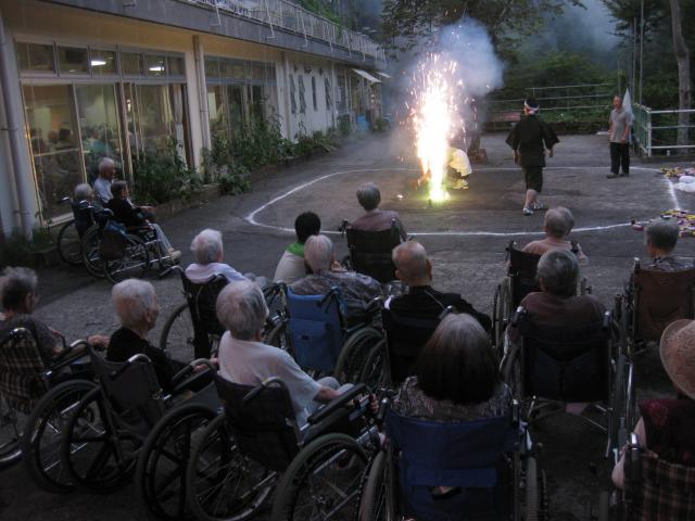 8月7日の夕方より苑庭にて夏の風物詩のひとつでもある花火大会を行いました。