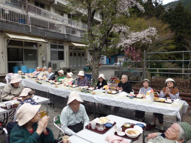 例年ですと、近隣の桜を観に出掛けていましたが、今年は苑庭にて全員参加のお食事会を