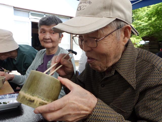 普段は無口で寡黙な方もおやきやうどんを皆で食べながら笑顔で会話され