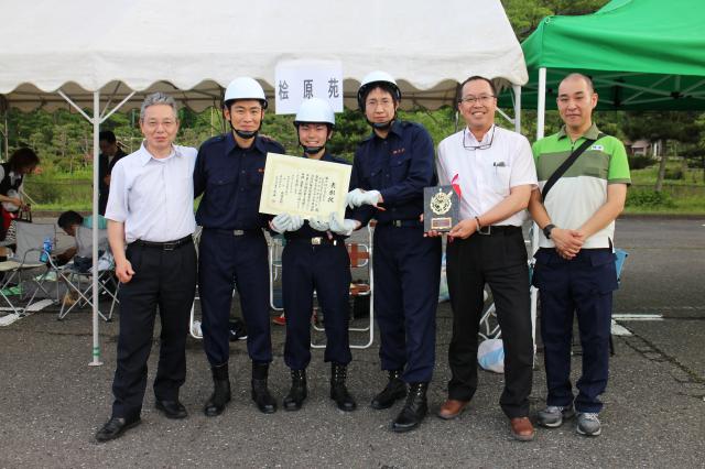 一号消火栓の部に介護、事務、調理の各部署より一名ずつ選抜し出場しました。