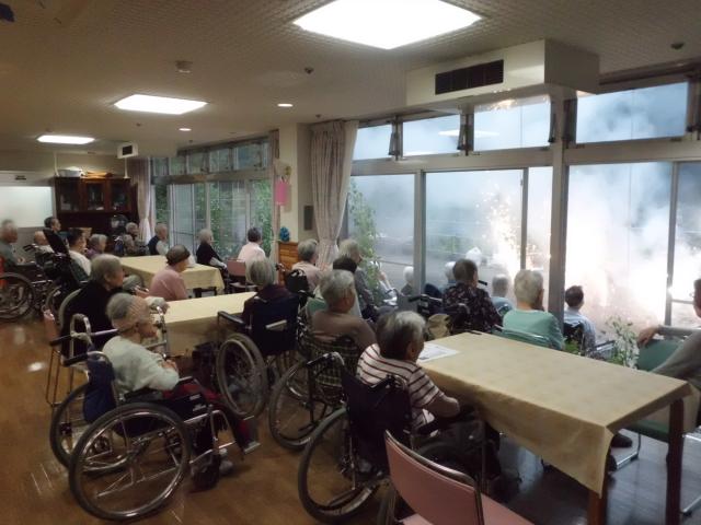 昨日まで雨が降り当日の花火大会はどうかと心配していましたが桧原苑のご利用者の皆様は