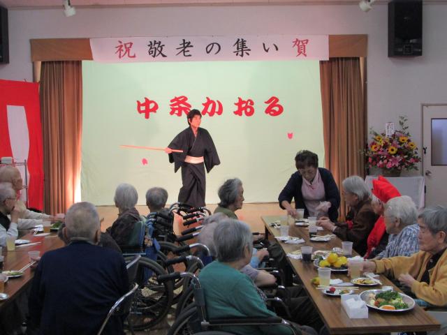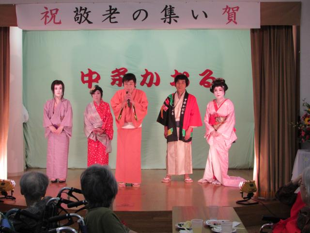式典は2部構成で1部では顕彰者のお祝い、2部は中条かおる一座による公演を