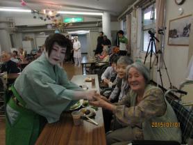 最後に一座の皆さんとご利用者、お招きした数馬地区の皆さんとで握手をして楽しい時間は