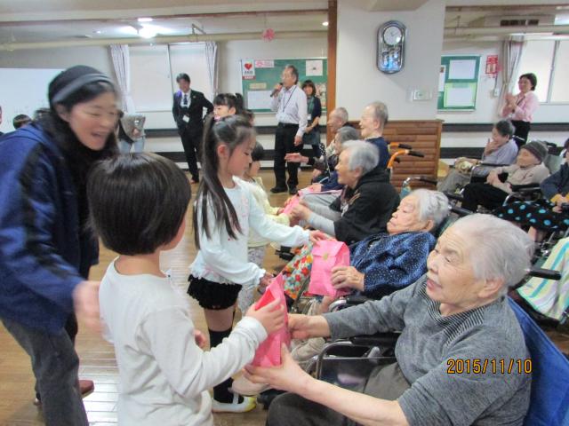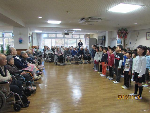 交流会に来苑されました。 ご利用者も楽しみにされていて、児童の皆さんが入場する前から、