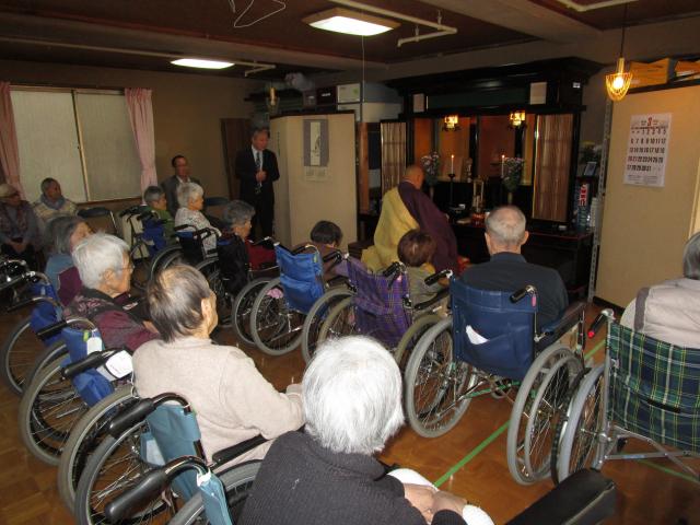 当日は27名のご利用者が参加され、住職の読経に合わせ、皆さん亡き故人を偲び、