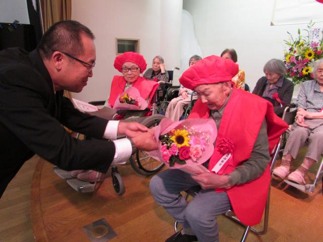 いただきました。式典には他のご入居者様も参加され、皆様に祝っていただき顕彰者の方たち