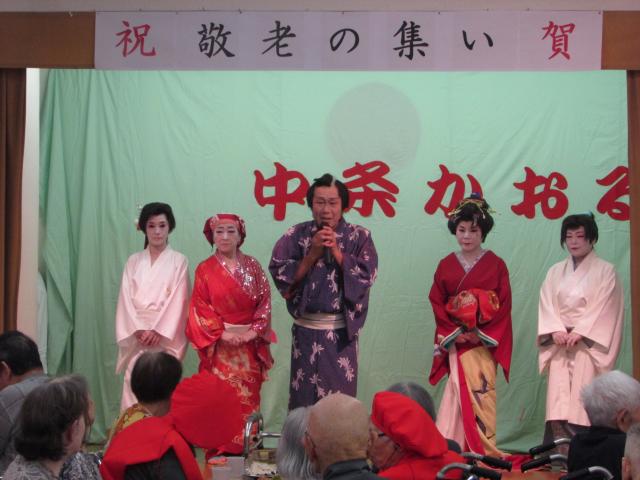 第二部は中条かおる一座をお招きし、演芸を鑑賞していただきました。普段見られない演芸に、皆様手拍子と声掛けをしながら演目を楽しんで居られる様子が印象的でした。