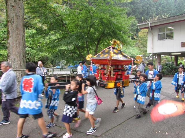 お子さん達が神輿を担いで苑庭を練り歩くと、みなさん掛け声に合わせて、ワッショイ、
