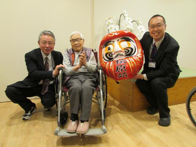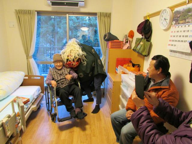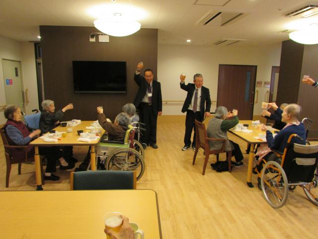 平成29年1月1日 恒例の新年交歓会が行われました。新施設への引っ越しが無事に終わり、新生活の始まりとともに、ご利用者の健康を祈願し行われました。第一部は、昼食で祝い膳を振る舞い、理事長・施設長中心に各ユニットを回り、新年を祝いました。又、最高齢2名の方によるだるまの開眼筆入れも行われ、盛況でした。第二部としては、獅子舞による新年の舞を各ユニットにて披露、ご利用者の皆様はとても喜ばれ、楽しい新年のスタートとしました。
