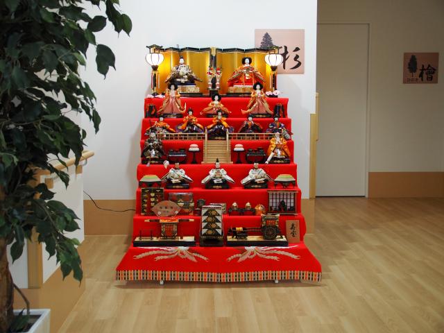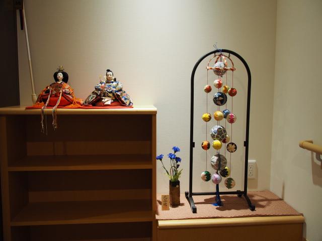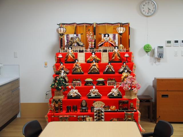 引越しをして、初めての桃の節句を迎えます。今年は各ユニットやフロアーのあちこちに地域の方から提供していただいたお雛様や、職員が自宅から持ってきたものなどを、色々なスペースに飾らせていただきました。ご利用者の皆様にも、とても好評でした。