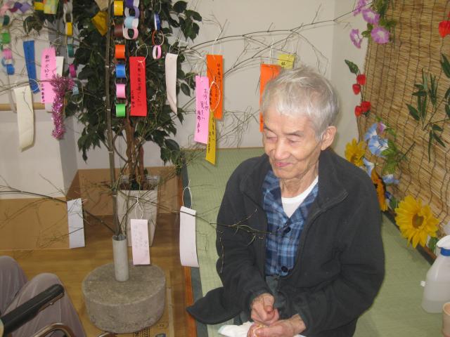 杉ユニット、檜ユニット合同で竹に短冊を飾り、お茶の時間を過ごして頂きました。