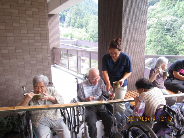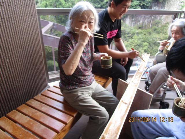 9月14日、昼食時に流しそうめんを行いました。