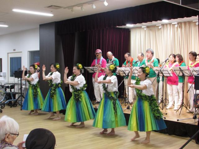 移転後初めてとなるフラダンスとウクレレの演奏会が11月26日(日)ボランティアのフラダンス「ロケラニ」、ウクレレ演奏「プアマナ」の皆様により、施設内1階地域交流スペースにて行われました。