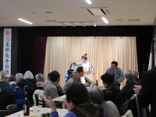 6名を招待し、飲み物やオードブルを振る舞い演芸を楽しんで頂いた。演目は「夢芝居」