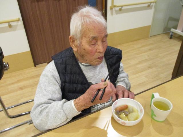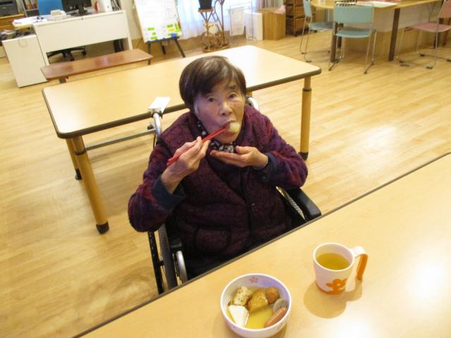 この日は、あらかじめ職員が制作した手作りおでんをおやつの時間帯に食べて頂きました。