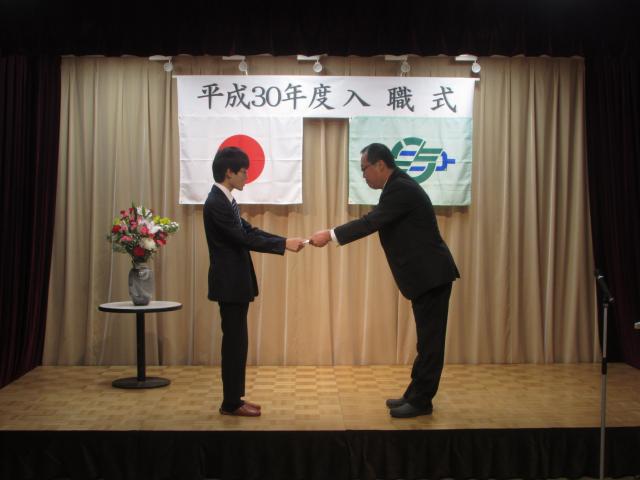 辞令交付の写真です。 |