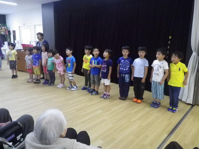 園児の皆さんの自己紹介に始まり、先生の電子ピアノの伴奏による歌の披露やご利用者