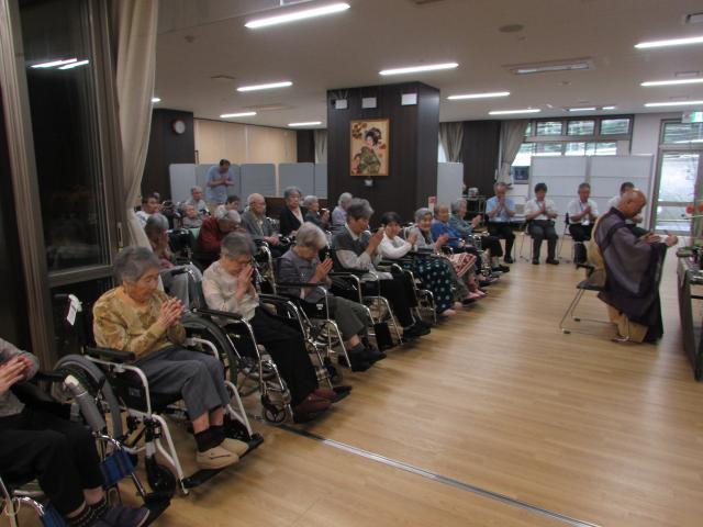 毎年恒例の行事で、当施設の菩提樹である玉傳寺住職をお招きし、ご利用者と共に読経に