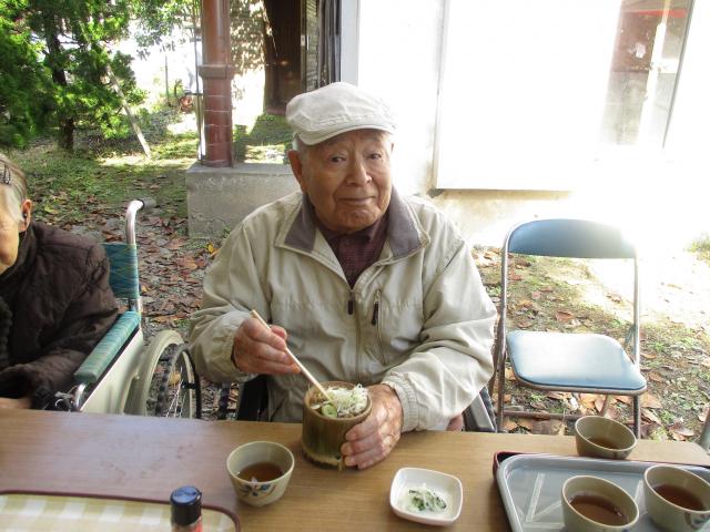 会場に着き地元の方々に作って頂いた、うどん、お焼きを注文し、食べて季節感を楽しんで頂きました。その後しばらく地元の方やご入居者様同士で談笑頂き散策をして帰苑しました。皆さん笑顔で一時を過ごされ和まれておりました。