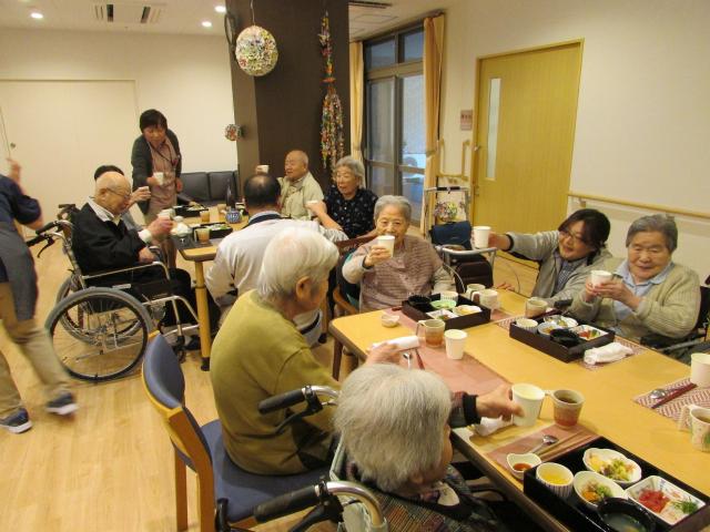 ご利用者の皆様にはその後、厨房職員が用意した、開苑を祝うご馳走を食べていただき、とても楽しまれたご様子でした。