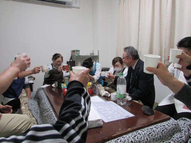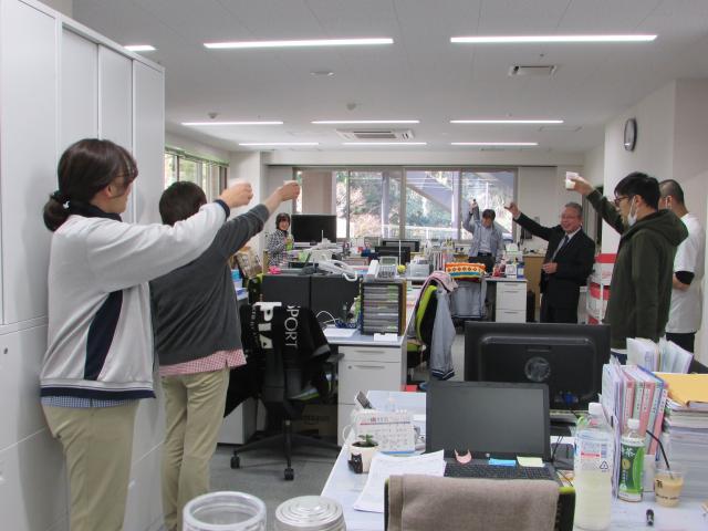 事務室でもやはりカンパーイ! |