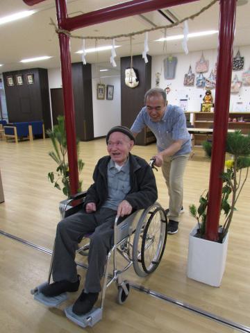各部署の職員の応援のお陰で、ほぼ全員の入居者様がけがもなく参拝が出来、良い1年のスタートが出来たと思います。