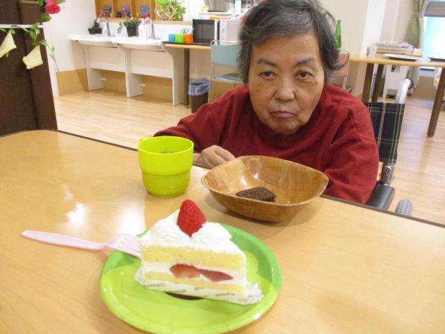初めに、お祝いを兼ねて、ケーキの提供を行うと、美味しそうに食べられ、楽しんで