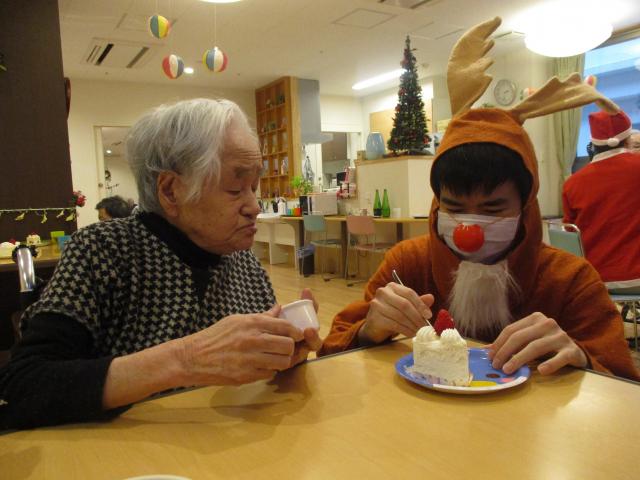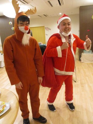 当日は、クリスマスの雰囲気を感じて頂く為、職員は事前にサンタクロース、トナカイの仮装を行いました。