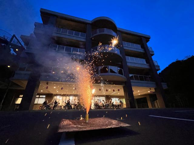 花火を見ながら夕涼みです。