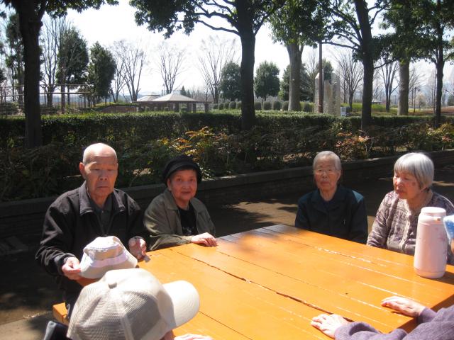 | 4月19日(火) 当日は朝から どしゃぶりの雨と風、更には気温も低く 花見としては あいにくの天気でしたが 日の出イオンモールでの 昼食中には雨も止み、時折、日も差して来るなど チューリップ畑到着後も風と寒さは依然、残りましたが 短い時間ながらも何とか利用者様方に、外に出て チューリップを鑑賞していただく事が出来ました。